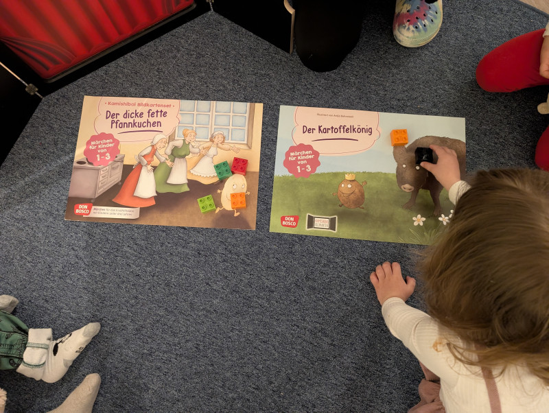 Singen & Stimme entdecken: Begrüßungs- und Jahreszeitenlieder, Fingerspiele, einfache Reime und Übergangslieder strukturieren den Tag.